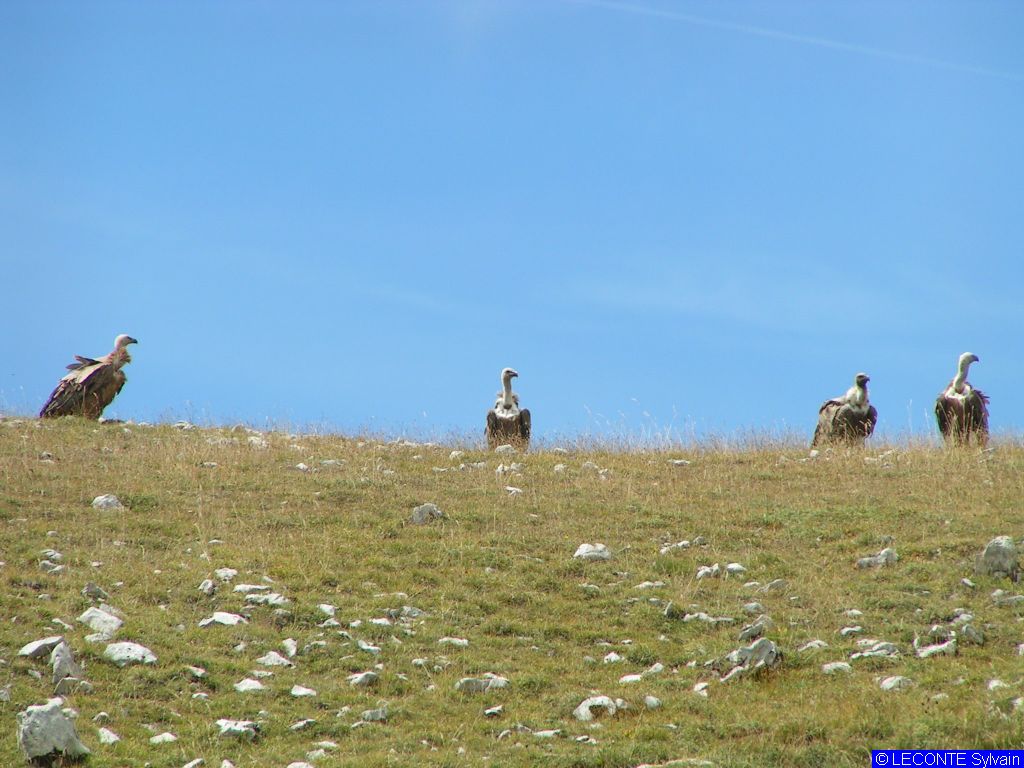 Vautours fauves sur la crête au dessus du Pas de la Selle.