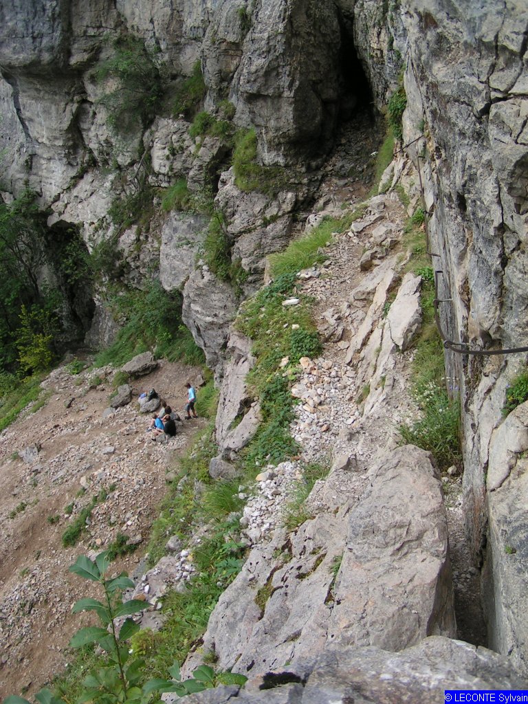 Chemin permettant le passage entre le haut et le bas de la première cascade du Guiers-Vif. C'est type via ferrata, à éviter en cas de vertige..